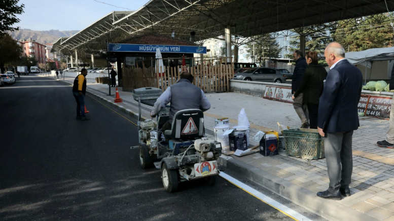Caddesi’nde araç trafiğinin düzenli hale getirilmesi amacı ile cadde boyu yol çizgileri ile park