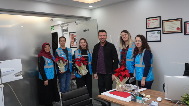 Diş hekimleri, ziyaret sırasında Belediye Başkanı Bekir Aydın’ın mesajını öğrenmenin yanı